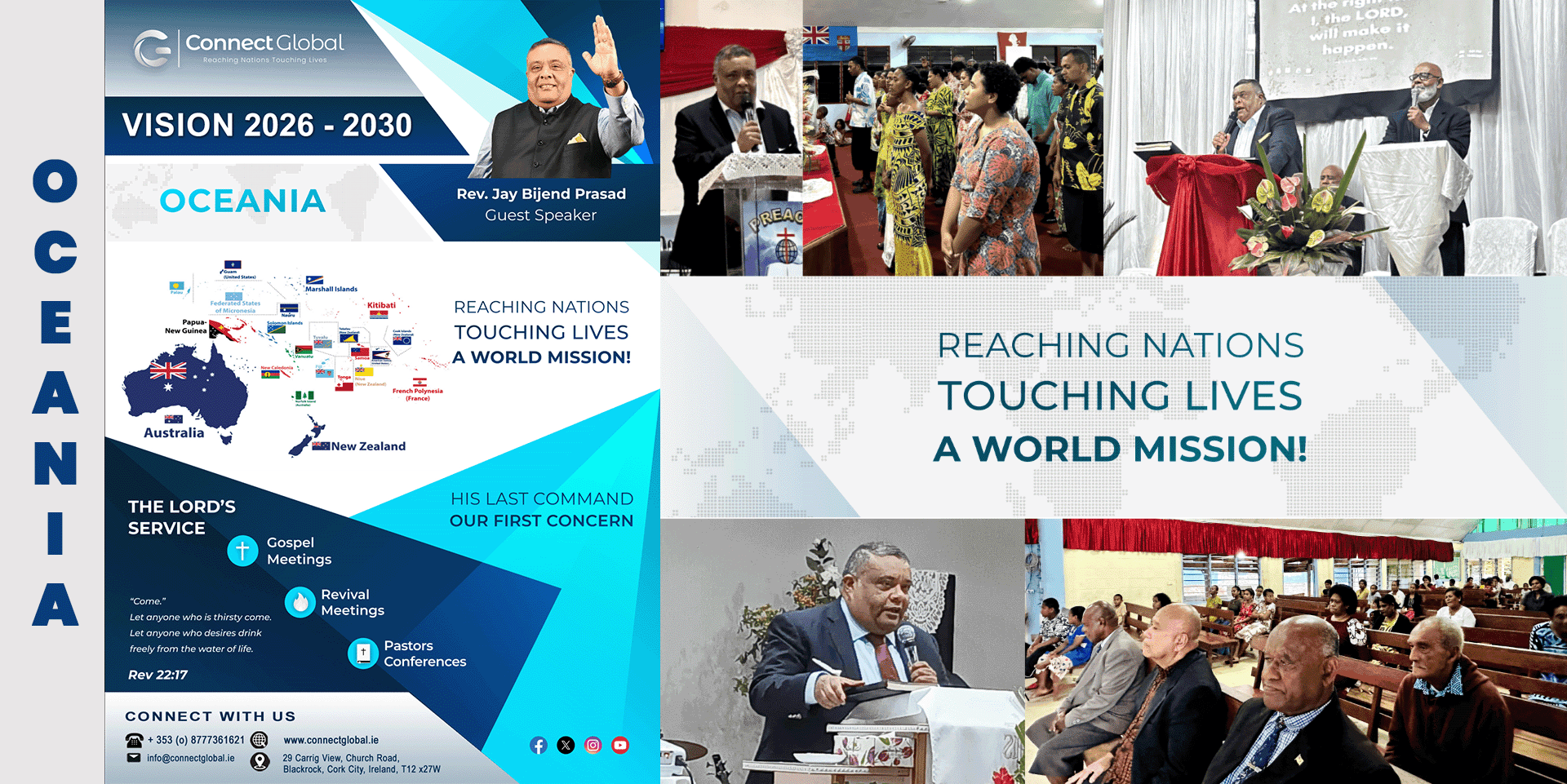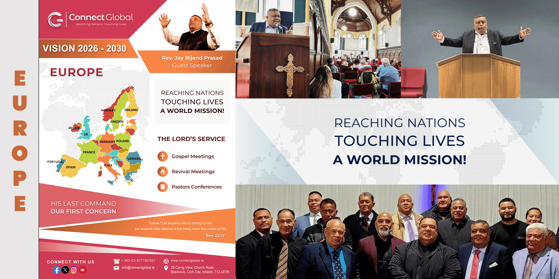 Rev. Jay Prasad is the Executive Director of Connect Global Ministry. He was born in Fiji and lives in Cork City Ireland and has been in ministry for thirty years. He is married to Donna and has two sons Joshua and Jared. Pastor Jay ministers in Ireland, United Kingdom, Europe, and the nations of the world.